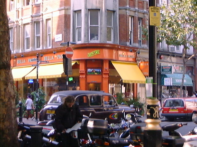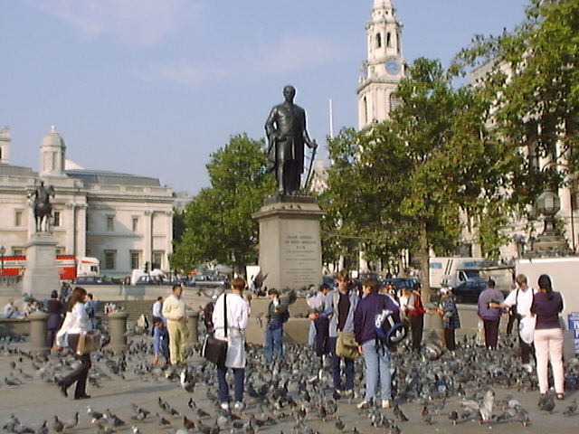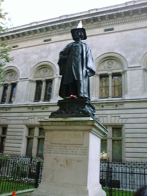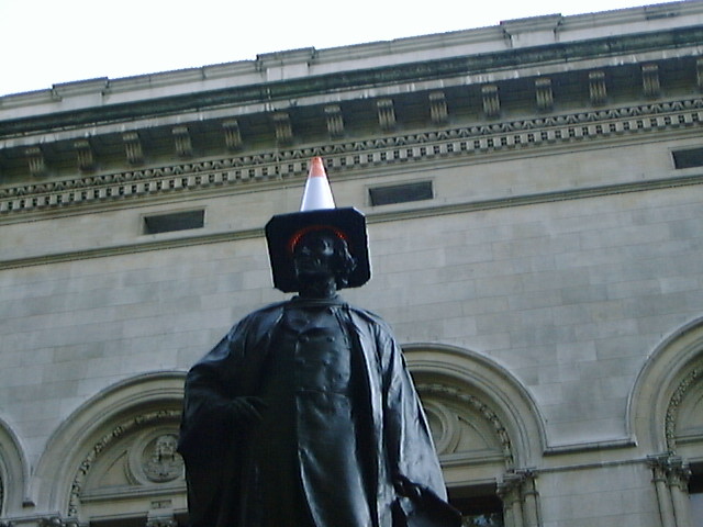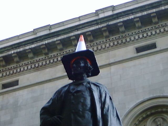 そのあと、レスタースクエアのそばのイタリア料理店で昼食。 その近くにあった大きな像に工事用の三角錐がかぶされていたのが不思議。