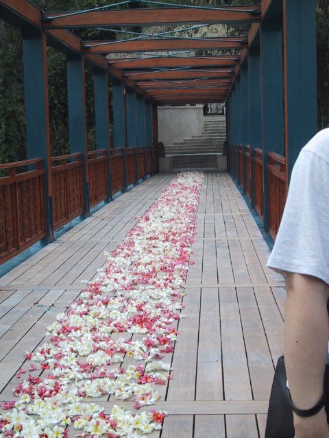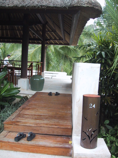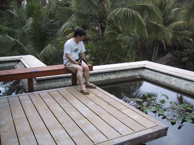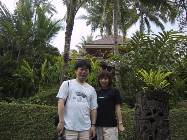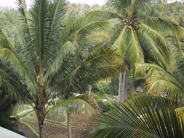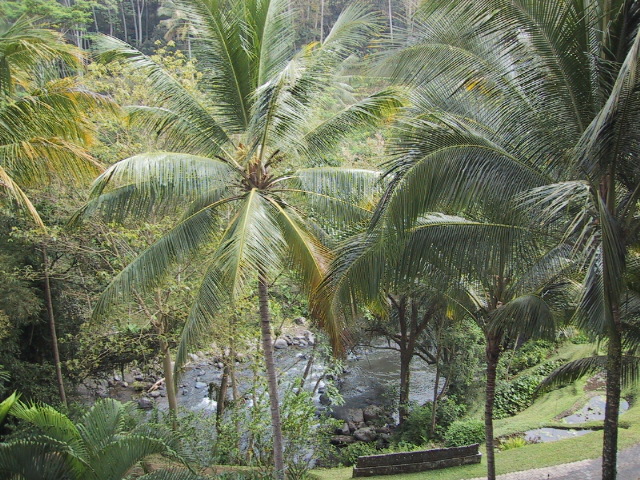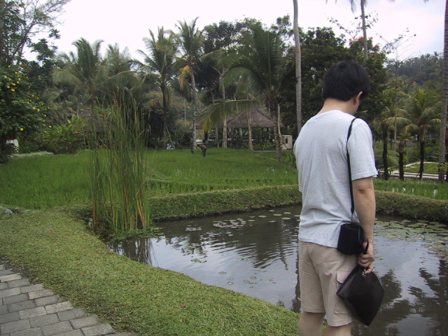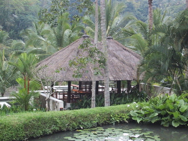朝食が終わると敷地内を散歩する。私たちのヴィラの庭の下を通る道のところで