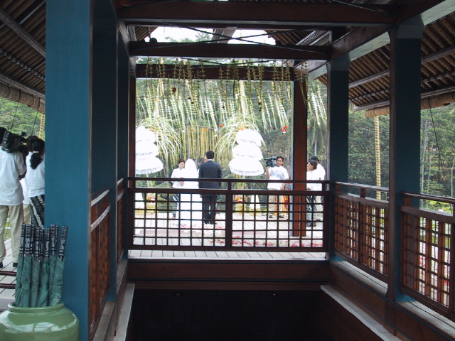 メインビルディングの上のルーフバルコニー部分で結婚式をやっていた。