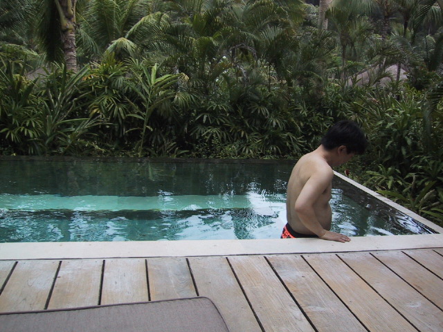 その後は、ヴィラのプールでのんびり過ごす。昼食も夕食もルームサービス。