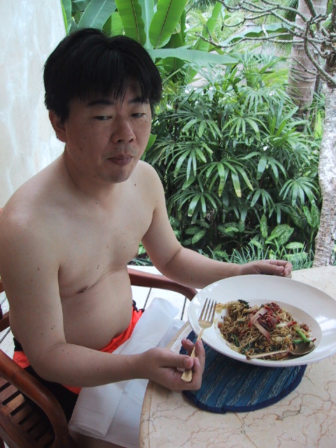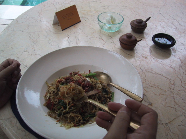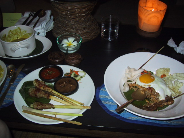 朝食:インドネシア風お粥、昼食:ミーゴレン、夕食:ナシゴレン&サテーでした。