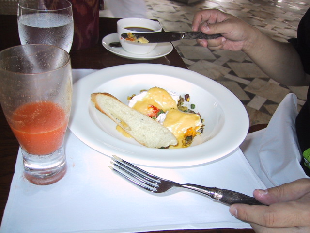 昼食をプールテラス・カフェで食べた(お寿司)時には、かなり焼けていた。