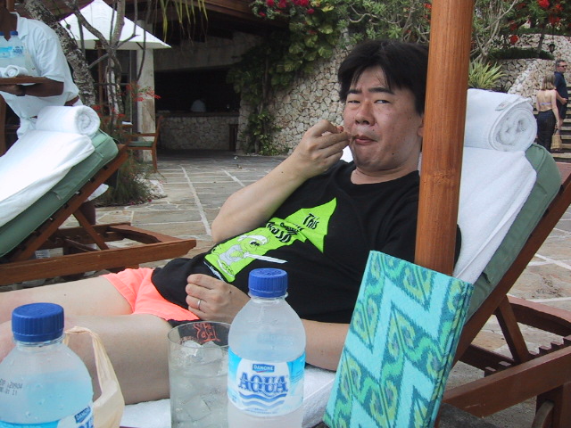 プールの水はかなり冷たいらしいので、私は入らず日焼けに専念する。