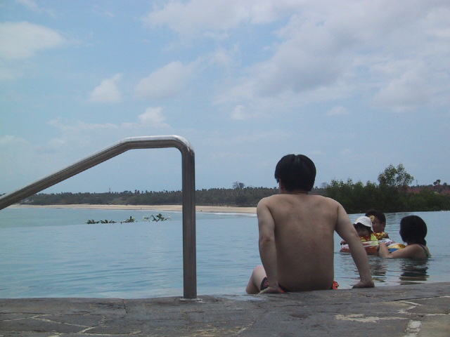 午後からは下にあるプールや、ビーチそばまで下りて散策の後、裏側を焼こうとするが、